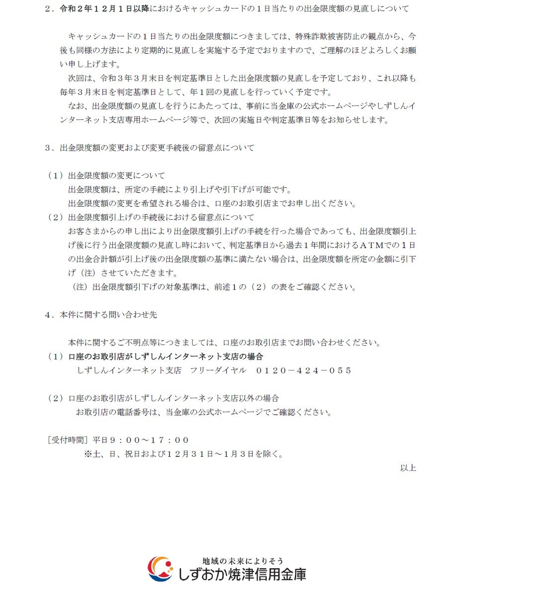 重要なお知らせ