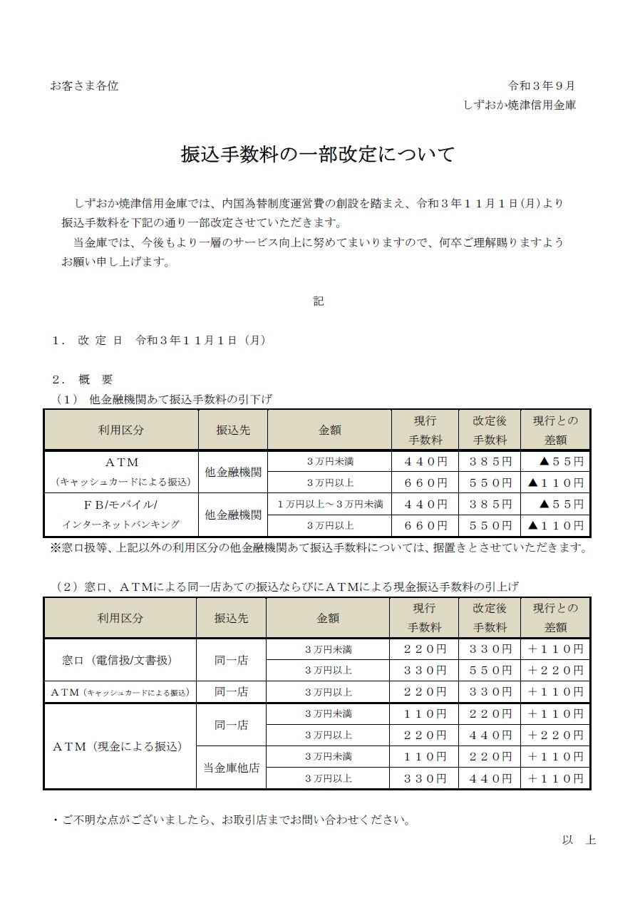 ホーム > 重要なお知らせ > 振込手数料の一部改定について